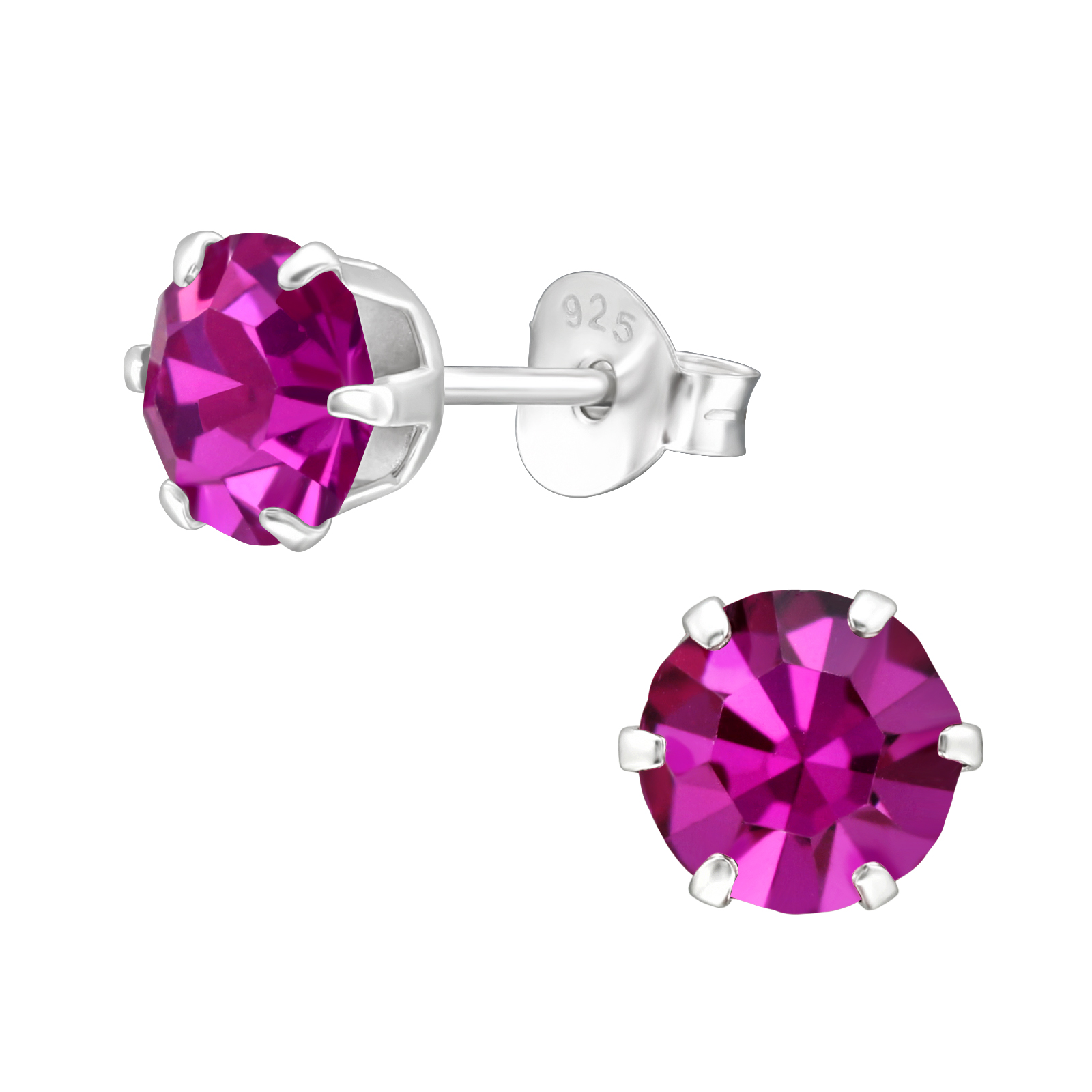 Sterling Silver 6mm Round Ear Studs with Crystal AB Fuchsia