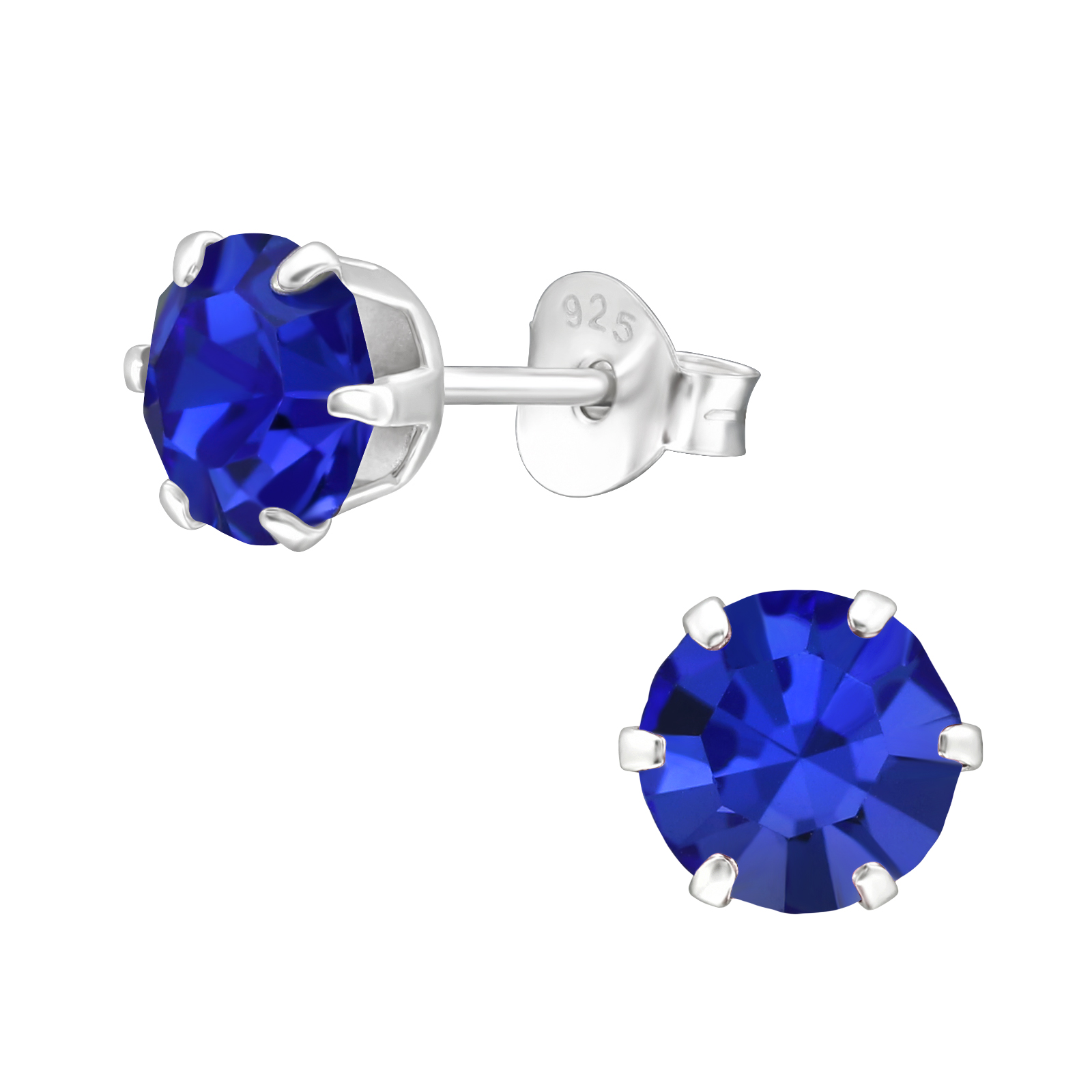Sterling Silver 6mm Round Ear Studs with Crystal AB Sapphire