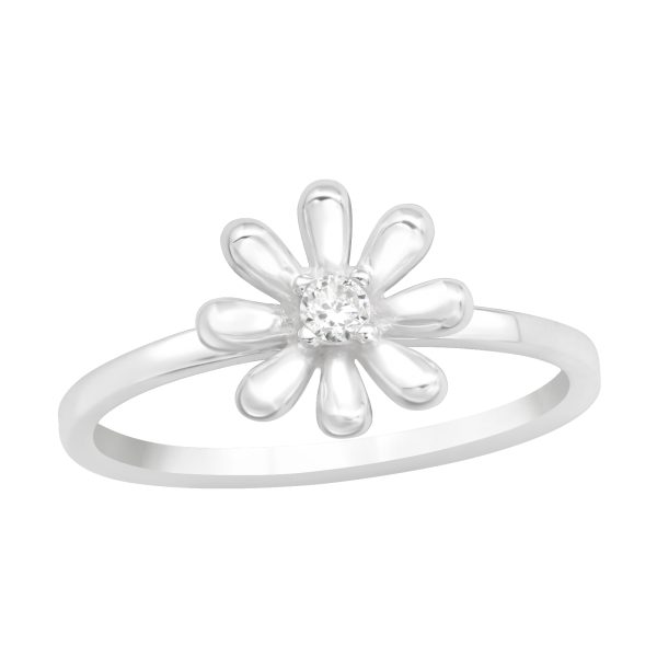 SKU: Silver Flower Ring with Cubic Zirconia