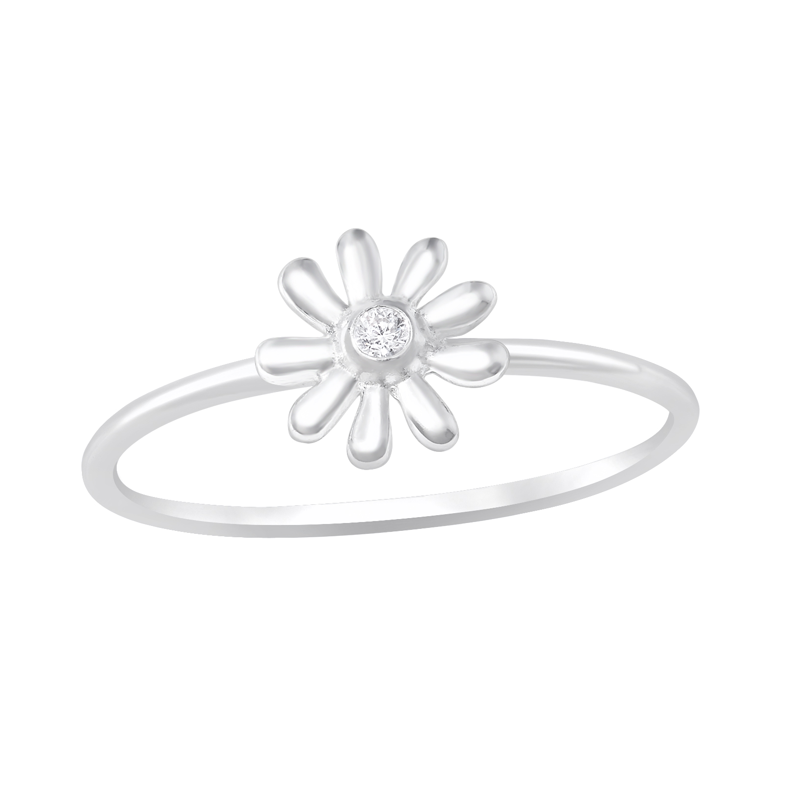 Silver Flower Ring with Cubic Zirconia