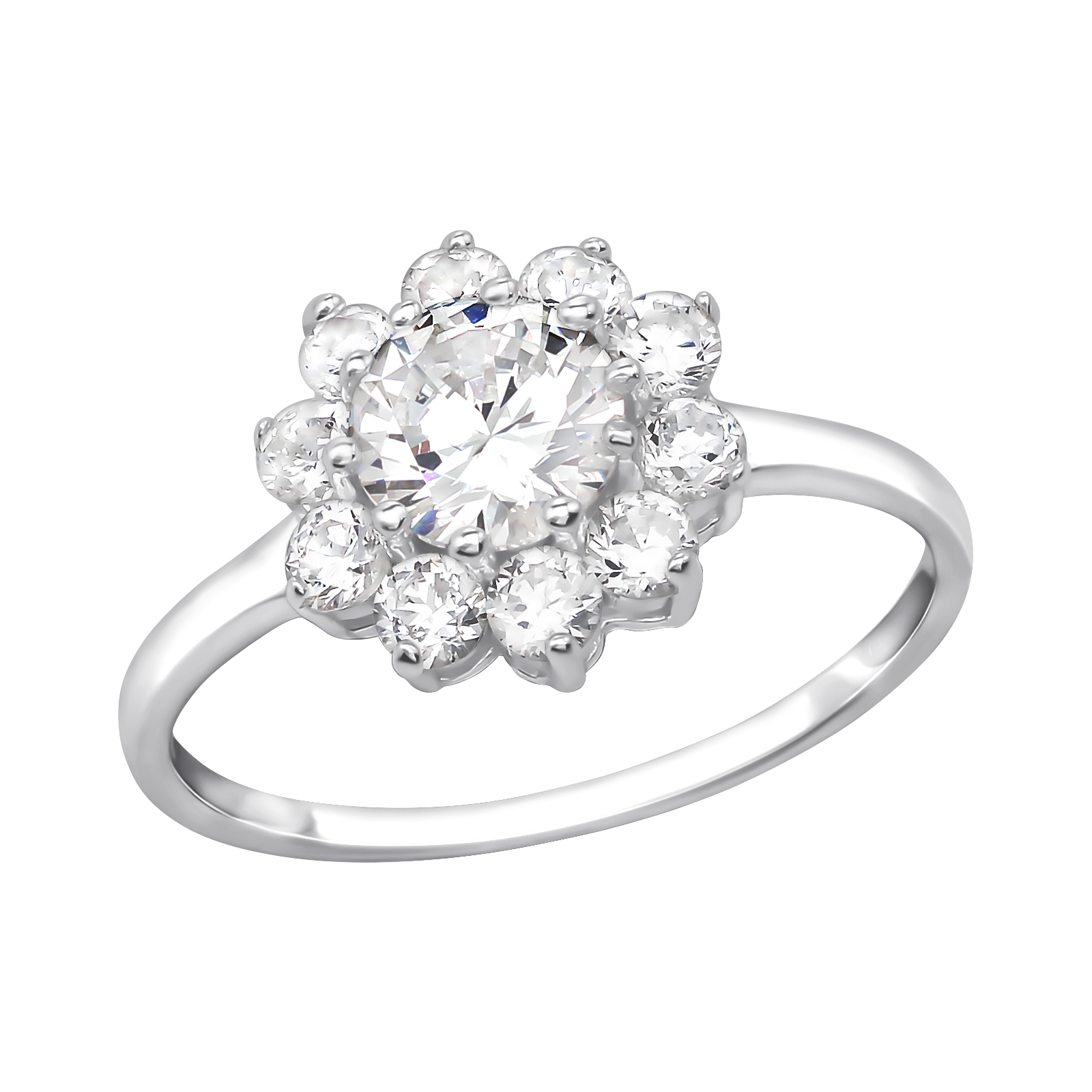 SKU: Silver Flower Ring with Cubic Zirconia