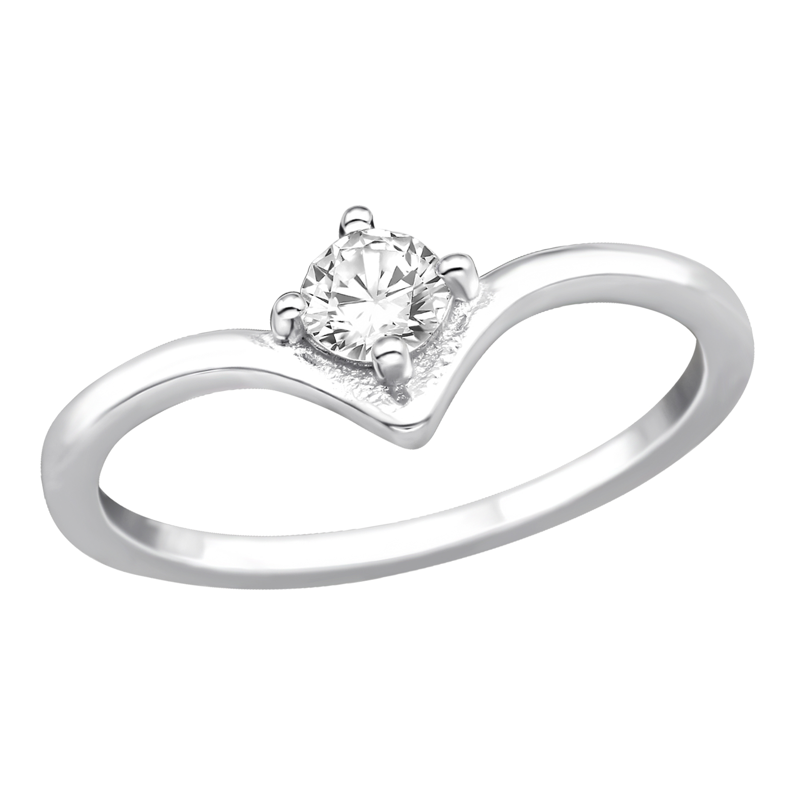 Silver V Shaped Ring with Cubic Zirconia